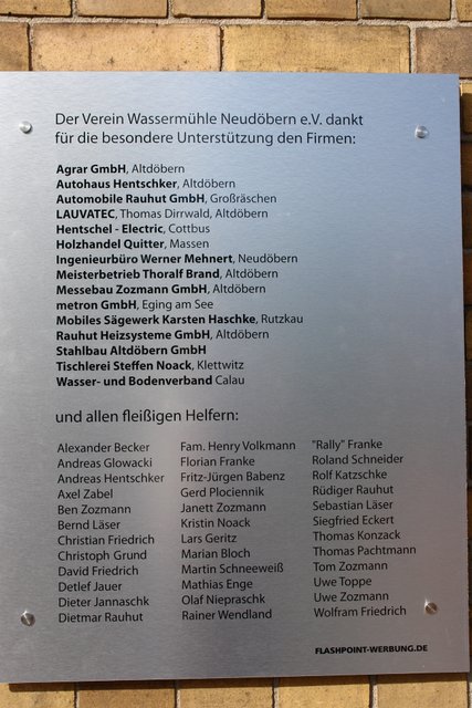 In Zusammenarbeit mit dem Wasser- und Bodenverband "Oberland Calau" wurde der gesamte Graben rund um den Mühlenhof von Schmutz und Schlamm befreit. Die Uferböschung wurde durch Verschienung und Einbringung eines wasserdurchlässigen Vlieses befestigt.